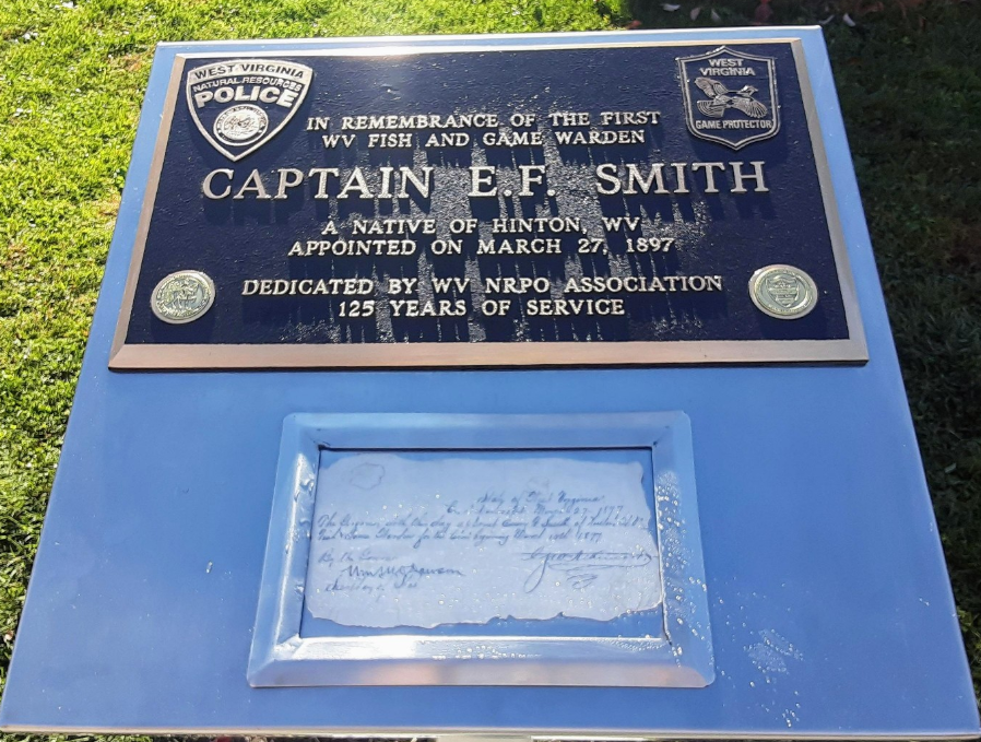 Hinton was home to West Virginia’s first Game Warden, Captain Emory F Smith. During Railroad Days 2022, West Virginia Department of Natural Resources personnel gathered at the Summers County Courthouse to dedicate a new memorial plaque to Captain Smith.