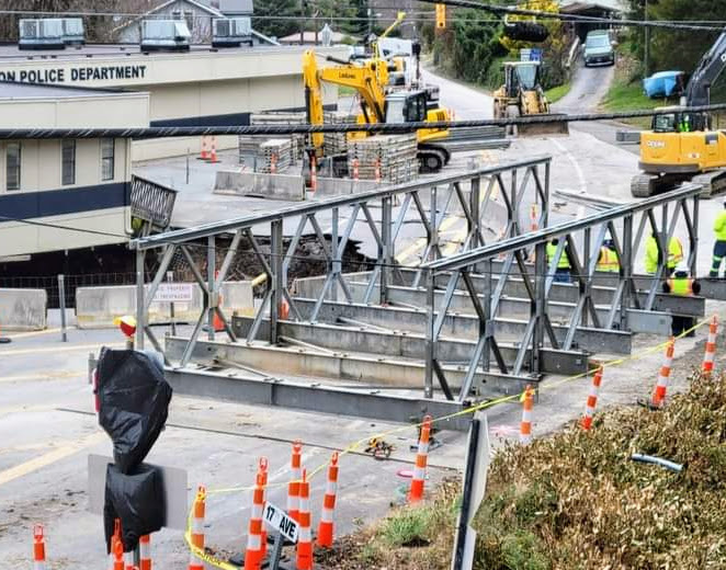 HINTON, (Hinton News) – Over the weekend, West Virginia Department of Highways crews constructed a bridge near the culvert collapse on Route 20. Work began at 7 a.m. on Friday, Nov. 18, requiring the road to shut down. The intention was to have the road back open at 7 a.m. Monday; however, the crews worked tirelessly and were able to open the area shortly after 3 p.m. on Sunday.