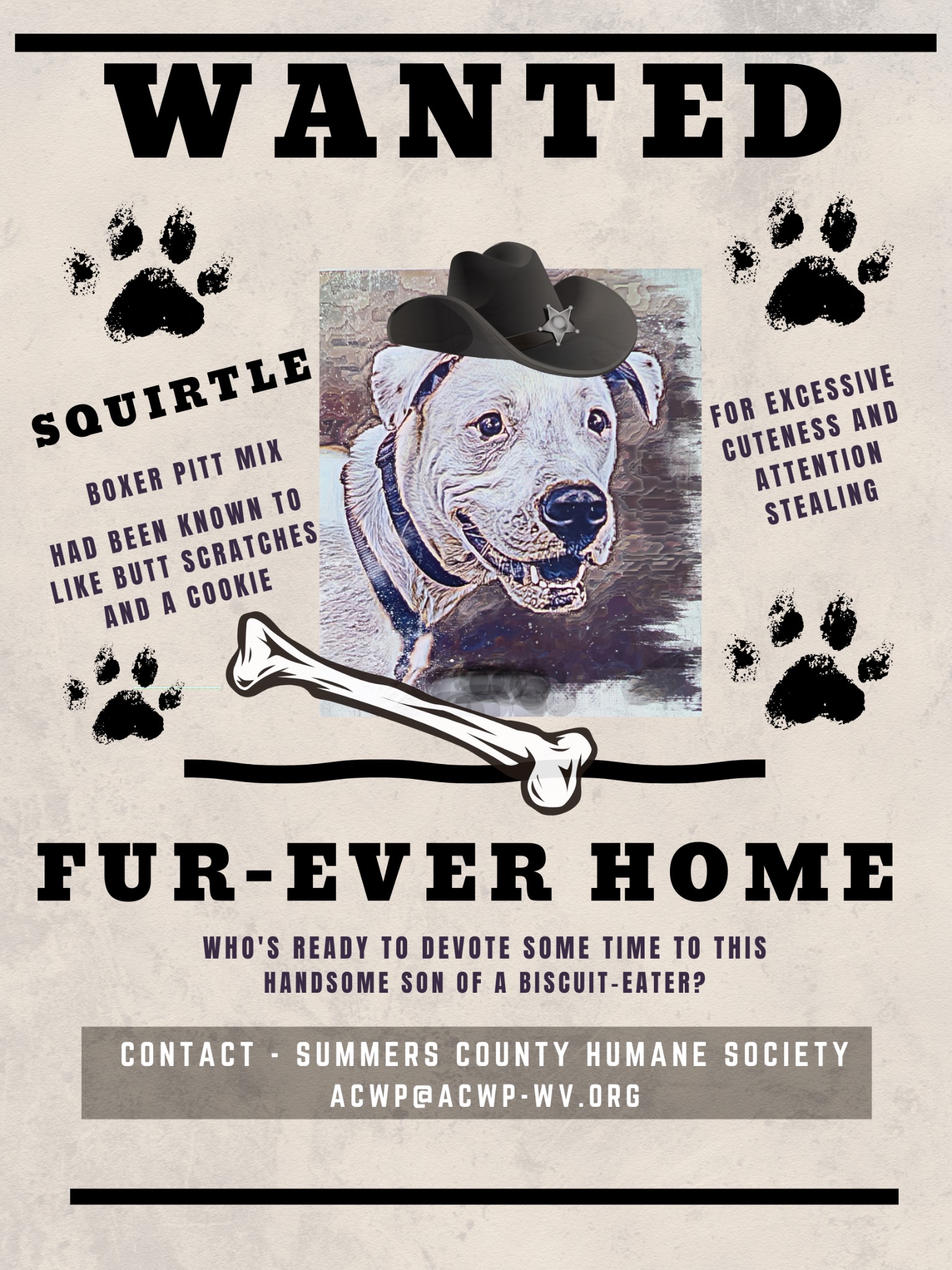 To make room for other dogs in need, the humane society is actively publicizing available dogs with the help of the Hinton News weekly spotlight and Mountainplex Media’s Fur Baby Fridays on Classic Hits 98.3 FM and WMTD-AM 1380, featuring a different dog every week on the radio stations’ Facebook page. Dogs available for adoption can be found at pet.com, Petfinder.com, and at www.acwp-wv.org/adoptions.